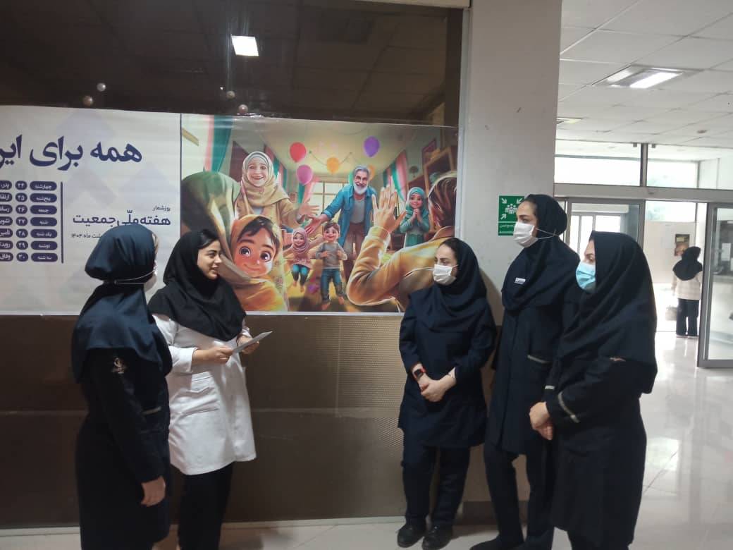 - پخش فیلم آموزشی در لابی بیمارستان با محتوایی جوانی جمعیت و تکریم سالمندان.